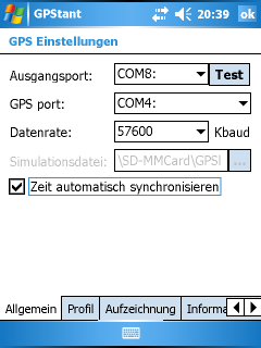 GPS port COM-Port oder Datei von dem GPS-Daten gelesen werden. Hier wird entweder der COM-Port des GPS-Empfängers bestimmt oder eine Datei wird als Datenquelle festgelegt. ∆ Angeboten werden nur bereits belegte COM-ports zwischen COM0: und COM9: .