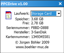 PPCDrive.exe auf dem PocketPC starten. Das gewünschte Laufwerk wählen.