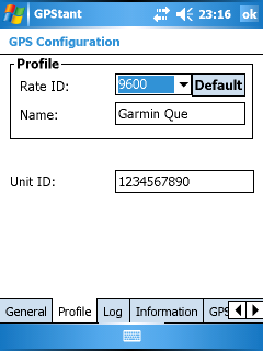 On this tab the profile data for a configuration used by a specific GPS client program are defined.