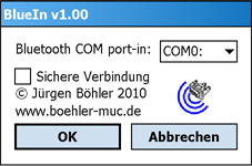 Abbrechen Beendet das Programm ohne die Bluetooth COM port einstellung zu verändern